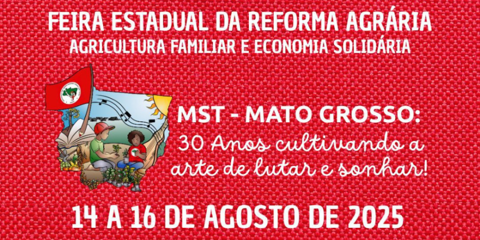 Grupo de Siriri e Cururu Raízes Cuiabana se apresenta às 11h, e a Banda Calorosa, às 20h desta sexta-feira (15), na Feira Estadual da Reforma Agrária, realizada na UFMT. O evento celebra os 30 anos de história, resistência e luta do MST em Mato Grosso.
