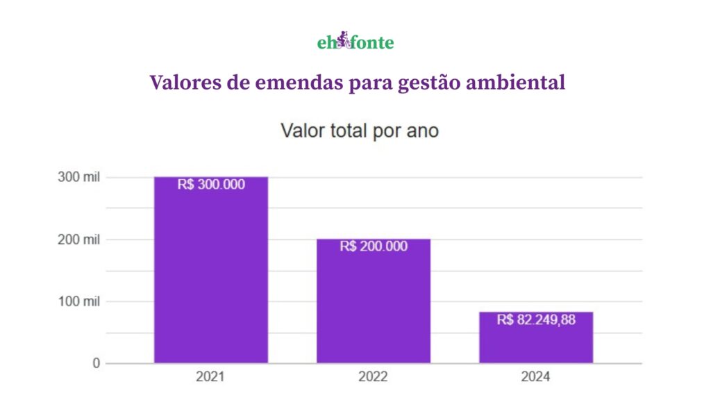 De 2021 a 2024, o meio ambiente ficou na lanterna da destinação de emendas parlamentares. O setor recebeu apenas R$ 582 mil em quatro anos, enquanto Esporte e Lazer somaram R$ 17 milhões e Cultura, R$ 21 milhões em 2025.