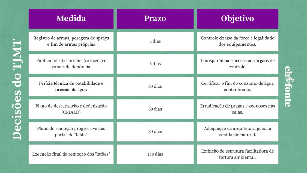 A decisão coloca o sistema penitenciário de Mato Grosso sob monitoramento permanente e estabelece prazos rigorosos para que as medidas saiam do papel — sob pena de impacto direto nos cofres públicos e no patrimônio dos gestores responsáveis.