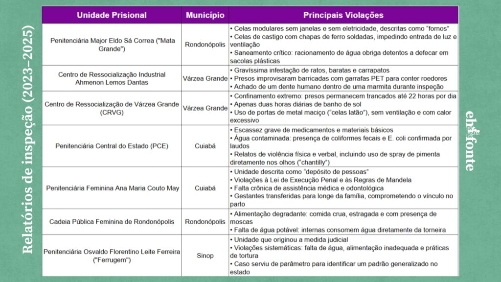 A decisão, assinada pelo desembargador Orlando de Almeida Perri, estendeu a liminar que inicialmente atendia apenas a Penitenciária Osvaldo Florentino Leite Ferreira, conhecida como “Ferrugem”, em Sinop (500 km de Cuiabá), para outras seis unidades do estado, após a constatação de que os problemas eram estruturais e generalizados.