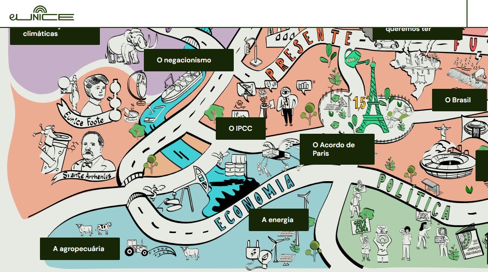 De cara, percebi sua utilidade e fiquei curiosa com o nome Eunice. Vi que é formado pelas iniciais do nome do projeto: Espaço Unificado de Informação Climática e Engajamento. E que, propositalmente, é uma homenagem à inventora e cientista amadora norte-americana Eunice Newton Foote (1819-1888), que foi pioneira na descoberta, há 169 anos (1856), da relação entre o aumento dos níveis de dióxido de carbono na atmosfera e o aquecimento do planeta, o que acabou conhecido como efeito estufa.